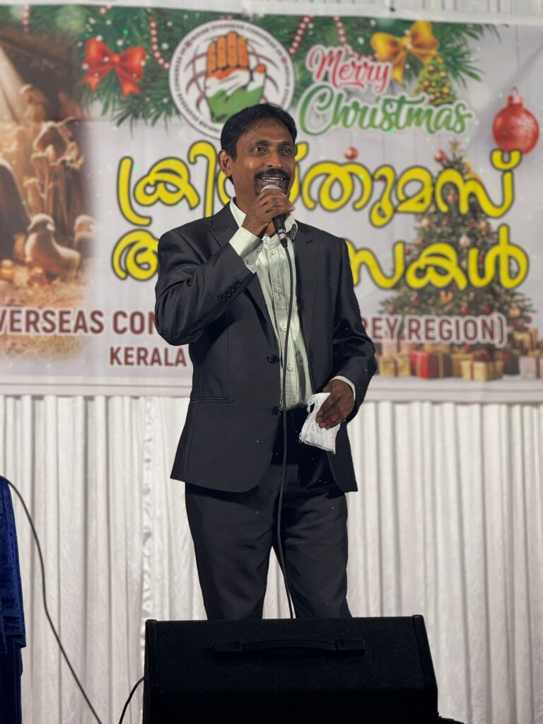 ഇന്ത്യൻ ഓവർസീസ് കോൺഗ്രസിന്റെ കേരള ചാപ്റ്റർ സാറേ റീജിയൻ 2025 ക്രിസ്മസ് ആഘോഷ പരിപാടി വളരെ വിപുലമായ രീതിയിൽ ക്രോയിഡോൺ St. Jude Church ഹാളിൽ വെച്ച് ഈ മാസം ഇരുപത്തിയേഴാം തീയതി ശനിയാഴ്ച നടത്തപ്പെടുകയുണ്ടായി.