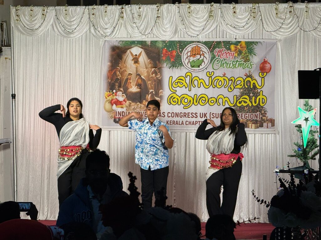 ക്രിസ്തുമസ് ആഘോഷ പരിപാടി ആഘോഷമാക്കുന്നതിന് വേണ്ടി ക്രോളി ഏഞ്ചൽ വോയിസ് കലാകാരന്മാരുടെ സംഗീതവിരുന്ന് ഏവർക്കും സന്തോഷകരമായ ആസ്വദിക്കുവാൻ സാധിച്ചു അതോടൊപ്പം തന്നെ നമ്മുടെ കുടുംബത്തിൽ തന്നെയുള്ള കുഞ്ഞുങ്ങളുടെ സംഗീത നൃത്ത പരിപാടി ഏവർക്കും ആസ്വാദകരമായി നൃത്തങ്ങൾക്ക് നേതൃത്വം നൽകിയ നേഹ ജെറിൻ ആൻഡ് മാത്യു നിവിൻ ജെറിൻ ദയാപ്രേം ദേവാപ്രേം എലന അന്തോണിയ എന്നിവർക്ക് ഐഒസി കേരള ചാപ്റ്ററിന്റെ അഭിനന്ദനങ്ങൾ അറിയിക്കുന്നു. അതോടൊപ്പം നമ്മുടെ സ്റ്റേജ് ഡെക്കറേഷൻ വളരെ മനോഹരമായ തീർത്ത് പരിപാടി വളരെ ഭംഗിയായി ചിട്ടപ്പെടുത്തിയ സാറ ജോർജ് ഇവന്റ് ടീമിനോടുള്ള നന്ദിയും ഈ അവസരത്തിൽ അറിയിക്കുന്നു. ഈ ആഘോഷ പരിപാടി എത്രയും വിജയകരമായി തീർക്കുവാൻ സഹകരിച്ച എല്ലാ കോൺഗ്രസ് നേതാക്കന്മാർ ഉള്ള അതോടൊപ്പം വന്ന് സംബന്ധിച്ച എല്ലാ കുടുംബാംഗങ്ങളും എല്ലാ സുഹൃത്തുക്കളോടും ഉള്ള നന്ദിയും ഈ അവസരത്തിൽ ഐഒസി കേരള ചാപ്റ്റർ പേരിൽ അറിയിക്കുകയും ഇതിൽ സഹകരിച്ച എല്ലാ ടീം മെമ്പേഴ്സിനോടു പ്രത്യേകിച്ച് യൂത്ത് ഗ്രൂപ്പിനോടുള്ള നന്ദിയും ഈ അവസരത്തിൽ അറിയിക്കുന്നു.