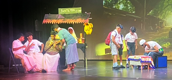 Another major attraction was the in-house stage adaptation of Vaikom Muhammad Basheer’s classic മുച്ചീട്ടുകളിക്കരന്റെ മകൾ (Mucheettukalikkarante Makal -The Card Player’s Daughter). The humorous yet emotional story of Ottakkannan Poker, his daughter Sainaba, and her lover Mandan Muthappa was brought to life with creativity, music, and nostalgic touches such as the scenes of the bustling local market.