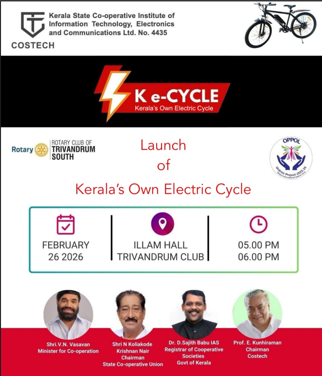 Kerala is set to take a significant step towards sustainable mobility with the launch of K-eCycle, an innovative electric cycle introduced through a collaboration with Costech, a Government of Kerala enterprise. The initiative marks a proud joint venture between IGNET Ltd, led by UK-based Malayalee entrepreneurs, and Costech, highlighting the growing contribution of the global Malayalee community to Kerala’s development journey.